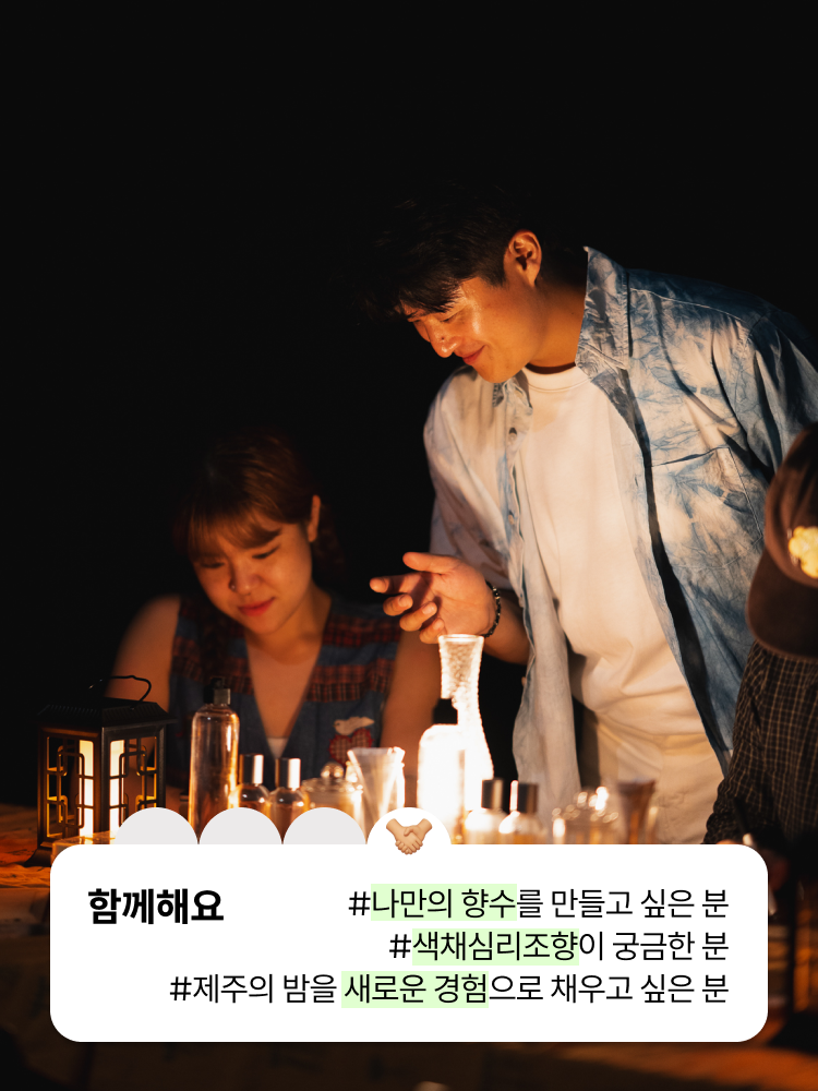 늘 비슷한 제주 저녁 코스에 지쳤다면, 대한목장에서 향기를 만들며 더 특별한 시간을 보내보세요! 드라이브나 맛집으로는 채울 수 없는 경험이 될 거예요.