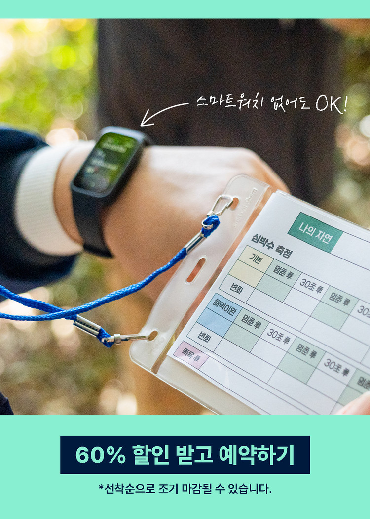 황미숙 로컬님은 ‘숲에서 생기는 작은 변화’를 누구나 편하게 느낄 수 있도록, 어렵지 않은 말로 몸의 반응을 설명해 주는 분이에요. 바쁜 일정과 쉴 틈 없는 알림들 속에서 우리가 얼마나 쉽게 지치는지, 또 숲이 그 균형을 어떻게 다시 잡아주는지를 천천히 이야기하듯 안내해 주세요. 스마트밴드로 내 몸의 데이터를 직접 확인해 보는 경험도 함께할 수 있어 “느낌만 믿는 힐링”이 아닌, 눈으로 보며 이해하는 시간이랍니다.