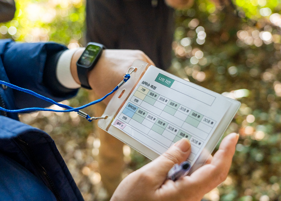 숲을 나오는 길에는 걷는 속도와 순서를 바꿔보며 내 심박수를 스스로 예측해 봅니다. 데이터를 통해 실제 몸의 반응을 바로 확인해 보면, 생각보다 재밌게 내 상태를 파악할 수 있어요.