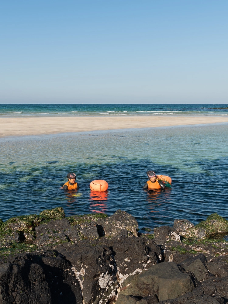 세화마을의 해녀문화 프로그램에 여행객으로 참여했던 로컬님은, 해녀 삼춘들의 삶에 깊이 반해 마을로 돌아왔어요. 지금은 세화마을에서 상군해녀가 되기를 꿈꾸며 해녀 삼춘들 곁에서 물질과 해녀 문화를 배우고 있는 인턴해녀랍니다.