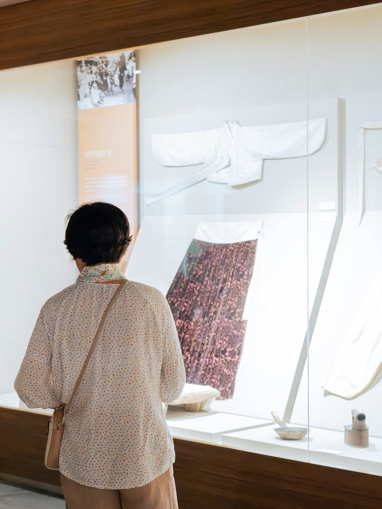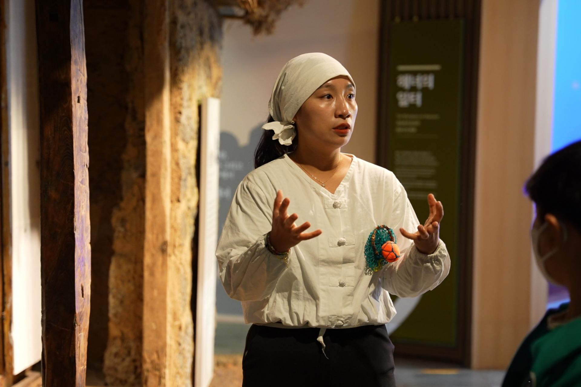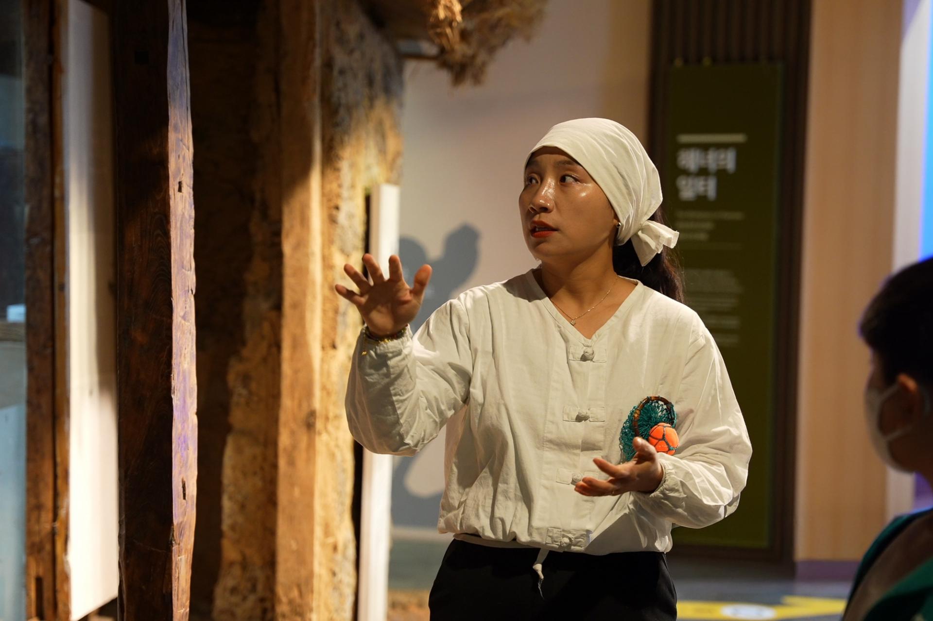 해녀박물관 에서 인턴해녀와 만나 여행을 시작해요. 해녀 삼춘들에게 직접 전수받은 이야기와 함께 박물관을 둘러봅니다. 전시된 물질 도구, 사진, 기록물 하나하나에 담긴 해녀들의 기억과 감정을 생생하게 들을 수 있어요. 안내판에는 적혀 있지 않은, 인턴해녀만 아는 숨은 이야기들을 만나보세요.