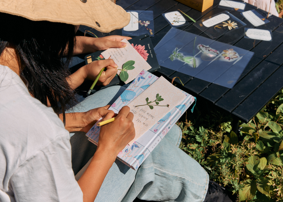 산책 중 발견한 들풀을 채집해 나만의 식물카드를 만들고, 그 위에 나에게 보내는 편지를 적어봅니다. 여행이 끝난 뒤에도 마음을 위로해 줄 특별한 기념품이 될 거예요.