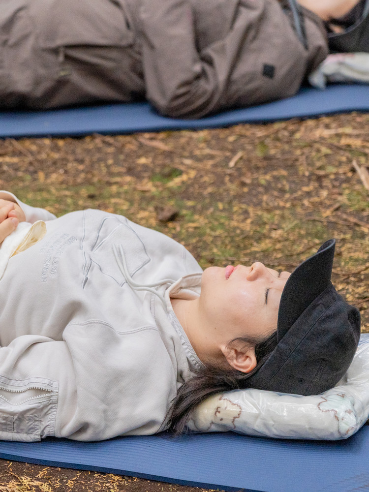 편백숲에 자리를 잡고, 싱잉볼 울림에 귀를 기울이며 눈을 감아요. 맑은 진동이 온몸에 퍼지면서 복잡한 생각들이 서서히 가라앉아요.
