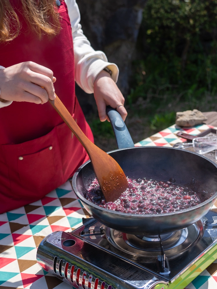 블루베리와 설탕을 잘 섞고 불에 올려 폴폴 끓여봅니다. 달달한 냄새를 맡으며 정성스레 저어주면서 나만의 유기농 잼이 만들어지는 시간을 보내세요. 완성된 잼은 병에 잘 담아 나를 위해 선물해볼까요?